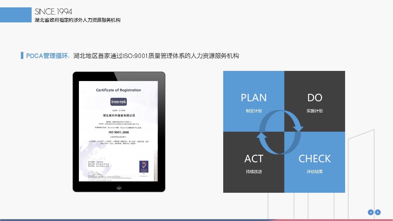 湖北地區(qū)首家通過ISO9001質(zhì)量管理體系認(rèn)證的人力資源服務(wù)公司